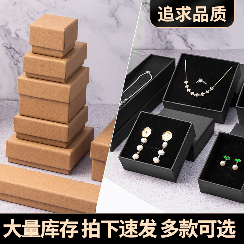 Kraft paper jewelry box square black jewelry box necklace ring stud earrings lid gift box customization