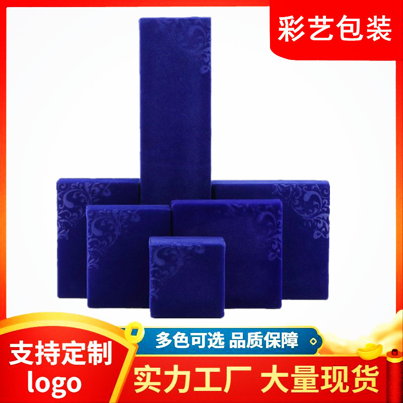 Factory Direct Sales Flip-Top Right-Angle Printed Velvet Jewelry Box Necklace Bracelet Ring Set Storage Packaging Box