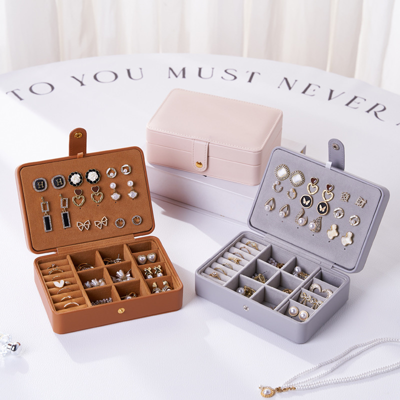 New Leather Stud Earrings Jewelry Storage Box Portable Necklace Ring Hand Jewelry Storage Box Travel Storage Box