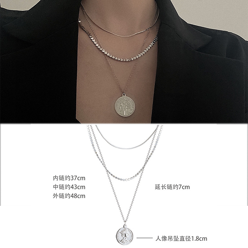 Cross-border jewelry short stick clavicle chain geometric disc pendant collar necklace three groups