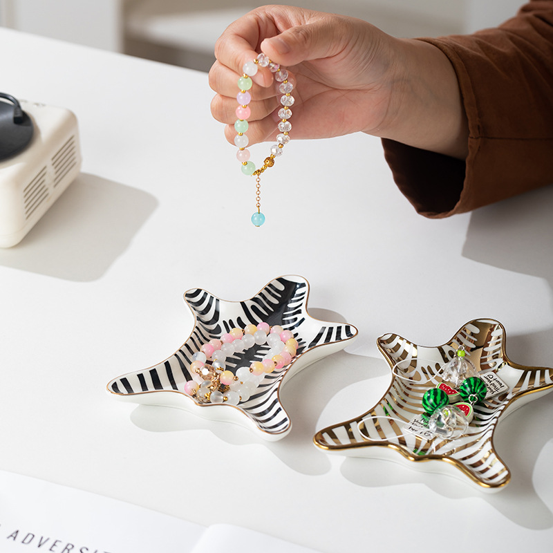 Cross-Border Ornaments Ins Style Ceramic Tiger Skin Jewelry Tray Cloud Stripes Tray Bathroom Storage Tray Desktop Decoration