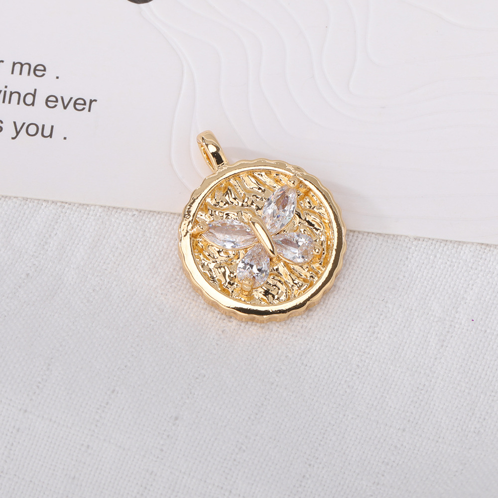 18K Gold Diamond-Encrusted Disc Butterfly Pendant, Light Luxury Style, Exquisite Accessory for Everyday Wear