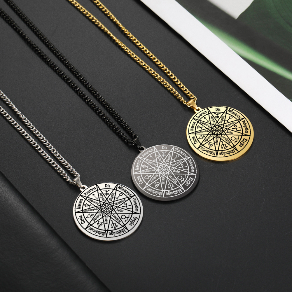 Street high-class minority cross-border best-selling disc solid marking nine-man star pattern stainless steel necklace