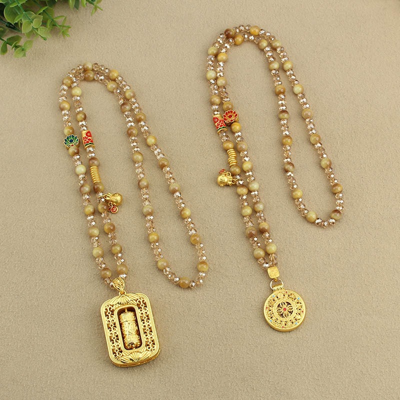 Ancient Gold Disc Six-Character Motto Rotating Crystal Long Necklace Imitation Gold Tiger Eye Sweater Chain Accessories
