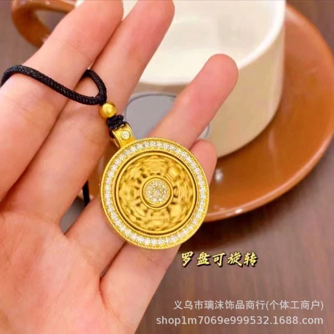 Vietnam sand gold turnable eight treasure compass pendant necklace women's copper gold plated disc hollow pendant sweater chain wholesale