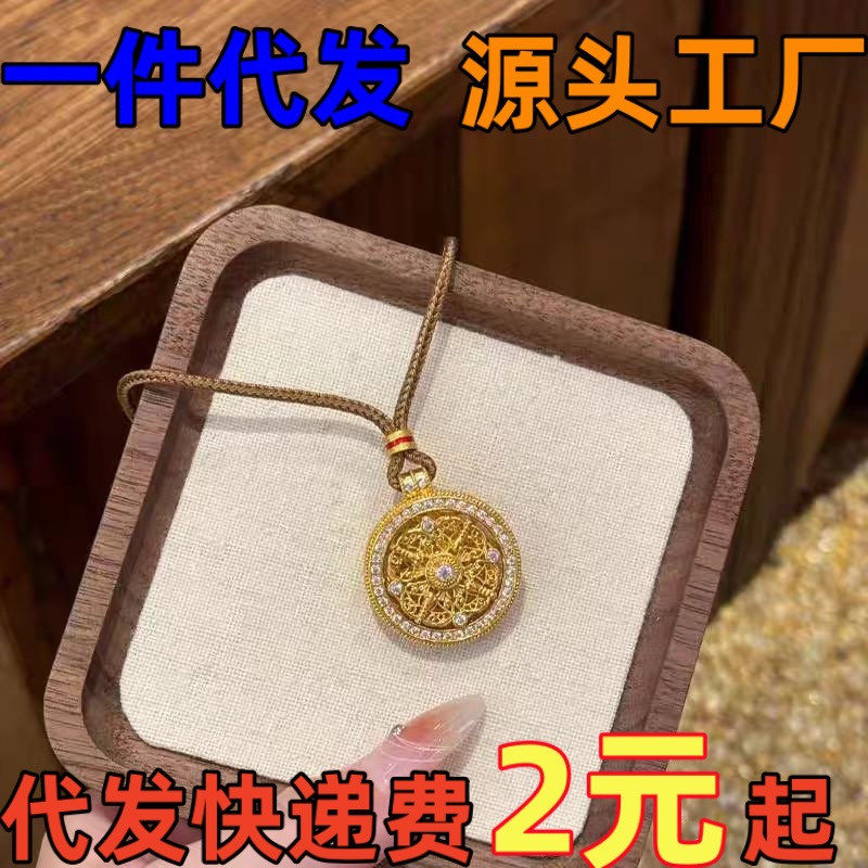 Vietnam Sand Gold Rotating Compasses Pendant Women's National Fashion All-Match Time-Running Disc Pendant Woolen Chain Necklace