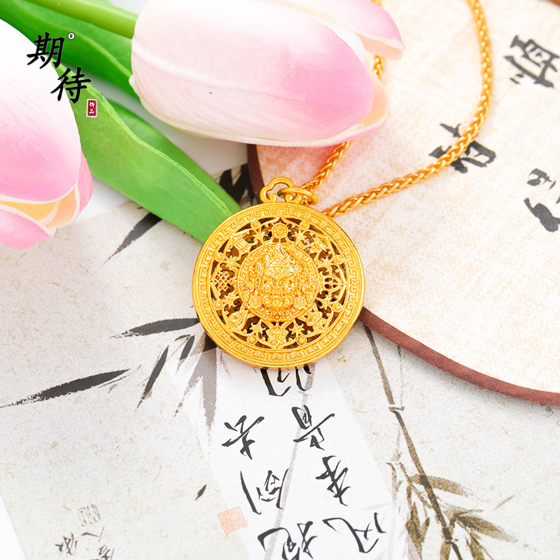 S925 Sterling Silver Yellow God of Wealth Pendant Men's and Women's Zakilam Disc Necklace Lucky New Chinese Gold Shop Same Style