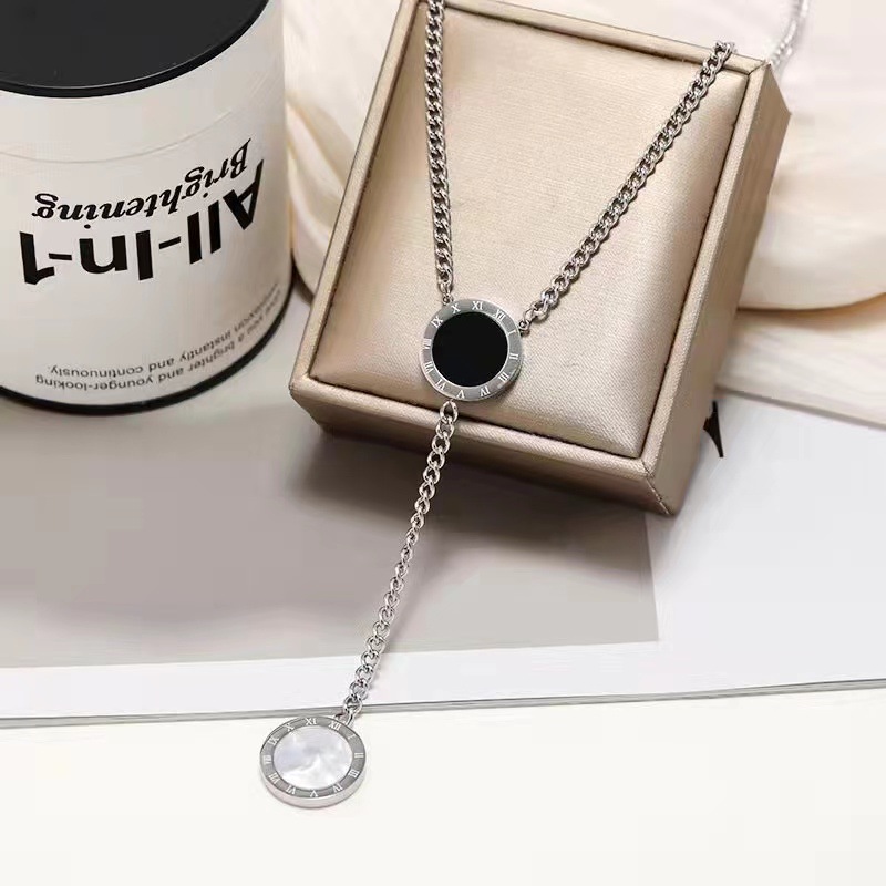 Japanese and Korean Style INS Internet Celebrity Design Sense Titanium Steel Disc Tassel Pendant Mid-length Sweater Necklace Shell Double-sided Wear