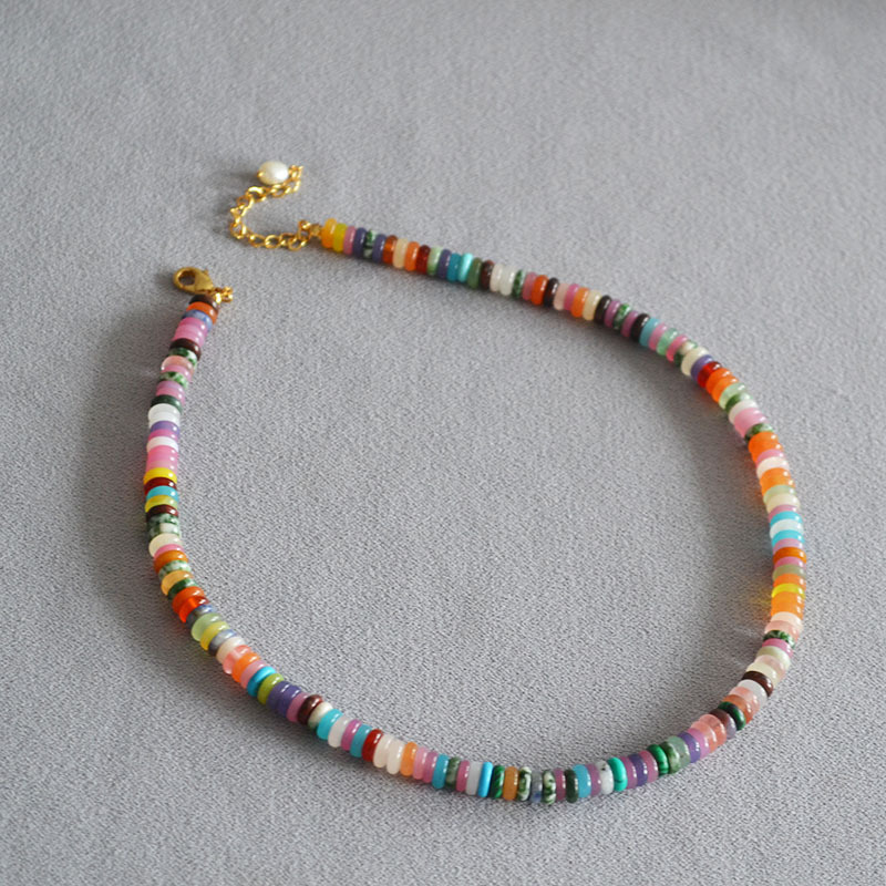 European and American Niche Design Summer Beautiful Color Disc Stone Beaded Vintage Fashionable Stacked Necklace Clavicle Chain for Women