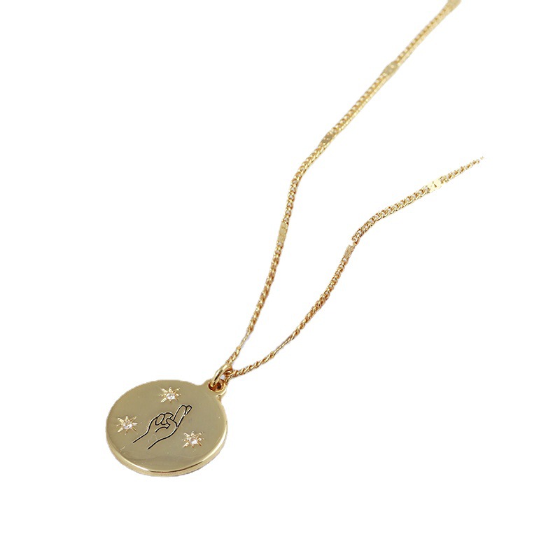 original!! 18k Gold Stainless Steel/Angel Rhinestone Pendant Necklace Ins Simple Exquisite Disc Pendant for Women
