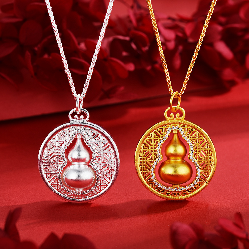 Gold Store's Same Style 2025 New Chinoiserie Chinoiserie Gold Gourd Disc Necklace Feminine Fashionable Sweater Chain Stylish