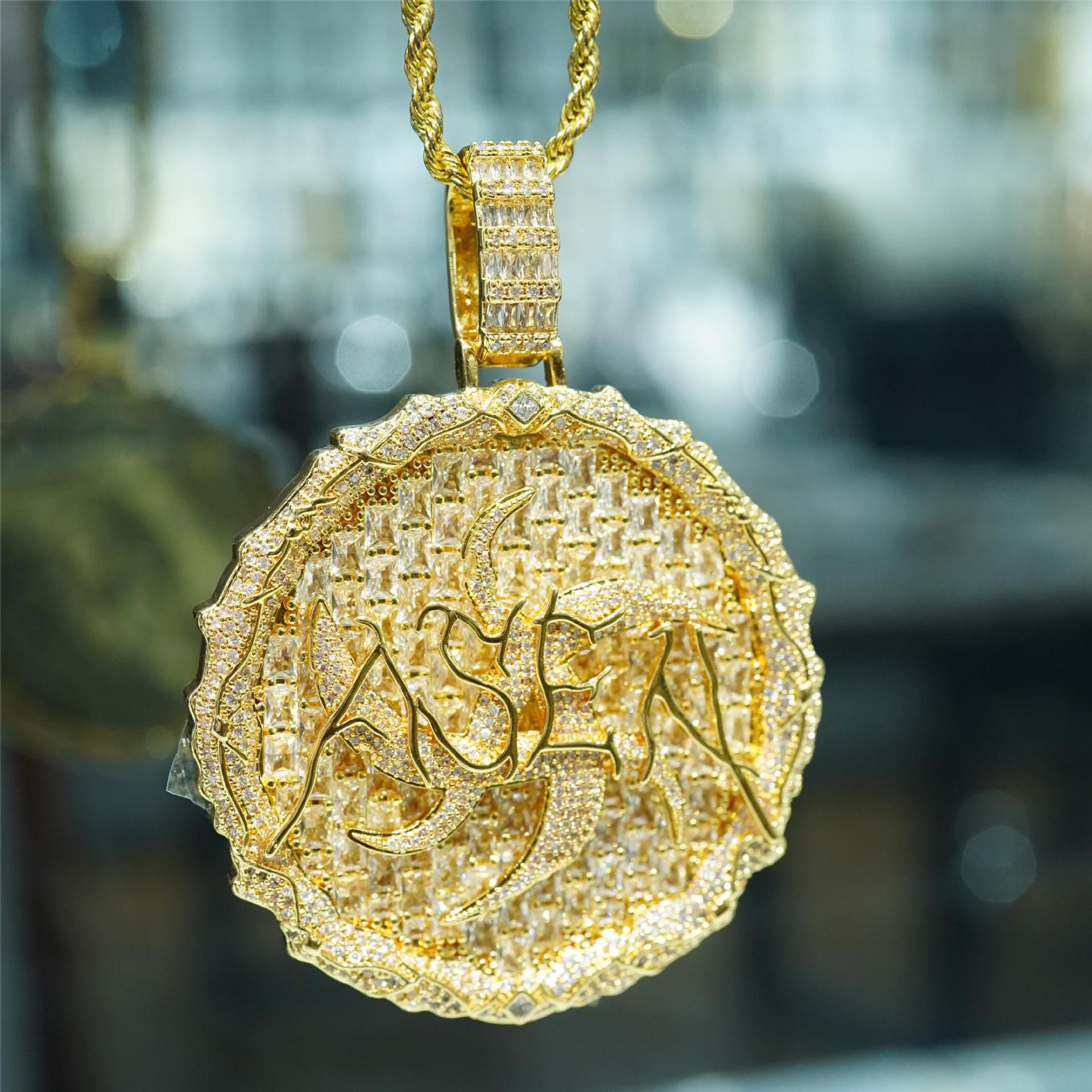 Hip-Hop Rap New Large Disc Pendant Cuban Chain Necklace Micro-Encrusted with Zircon Men's Necklace Ready for Sale Wholesale Trend