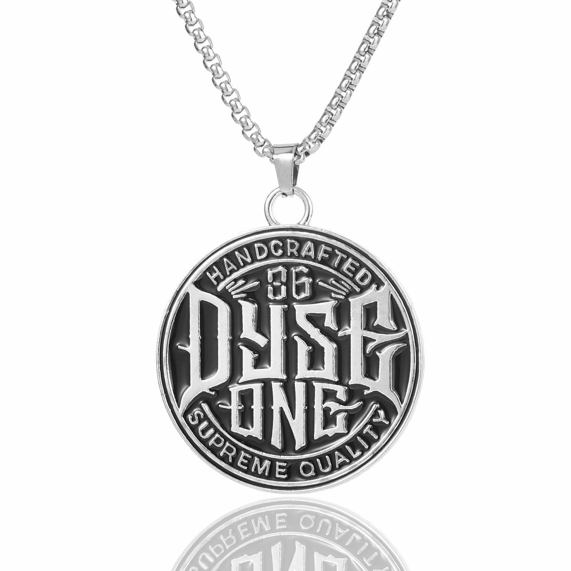 European and American Retro English Disc Titanium steel necklace men's street personality round military brand long sweater chain Accessories Wholesale