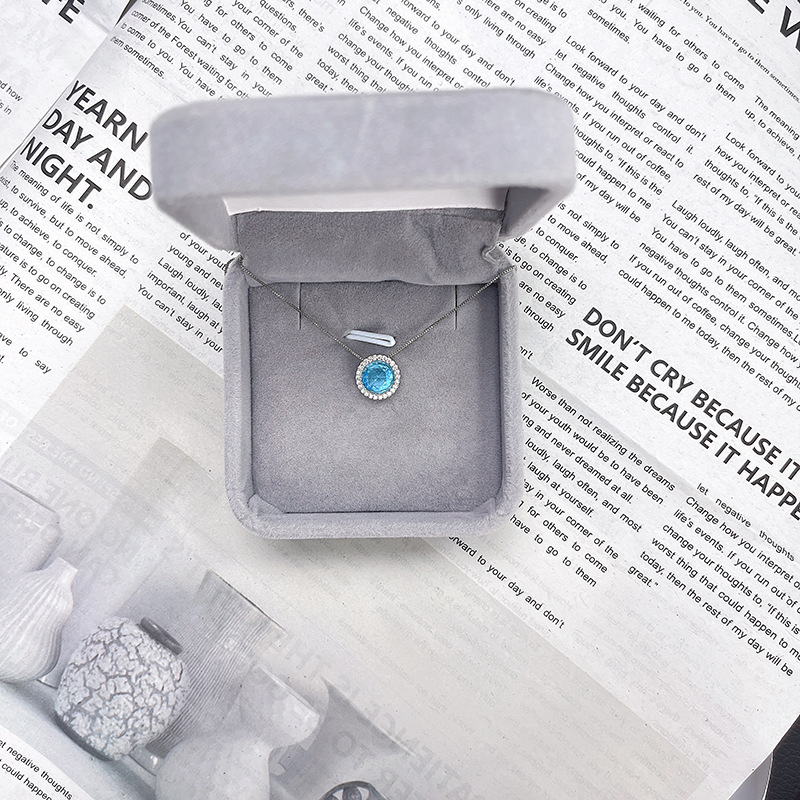 Ins Style Xiaohongshu Best-Selling Disc Inlaid Blue Zircon Necklace Pendant Jewelry Women's Adjustable Fashion