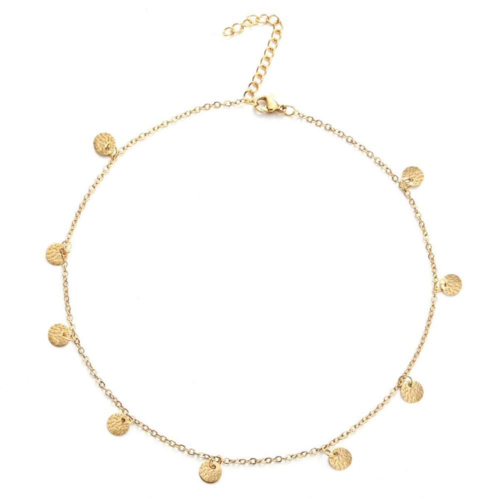European and American ins fashionable stainless steel concave-convex disc tassel coin short necklace personalized Internet celebrity clavicle chain all-match necklace