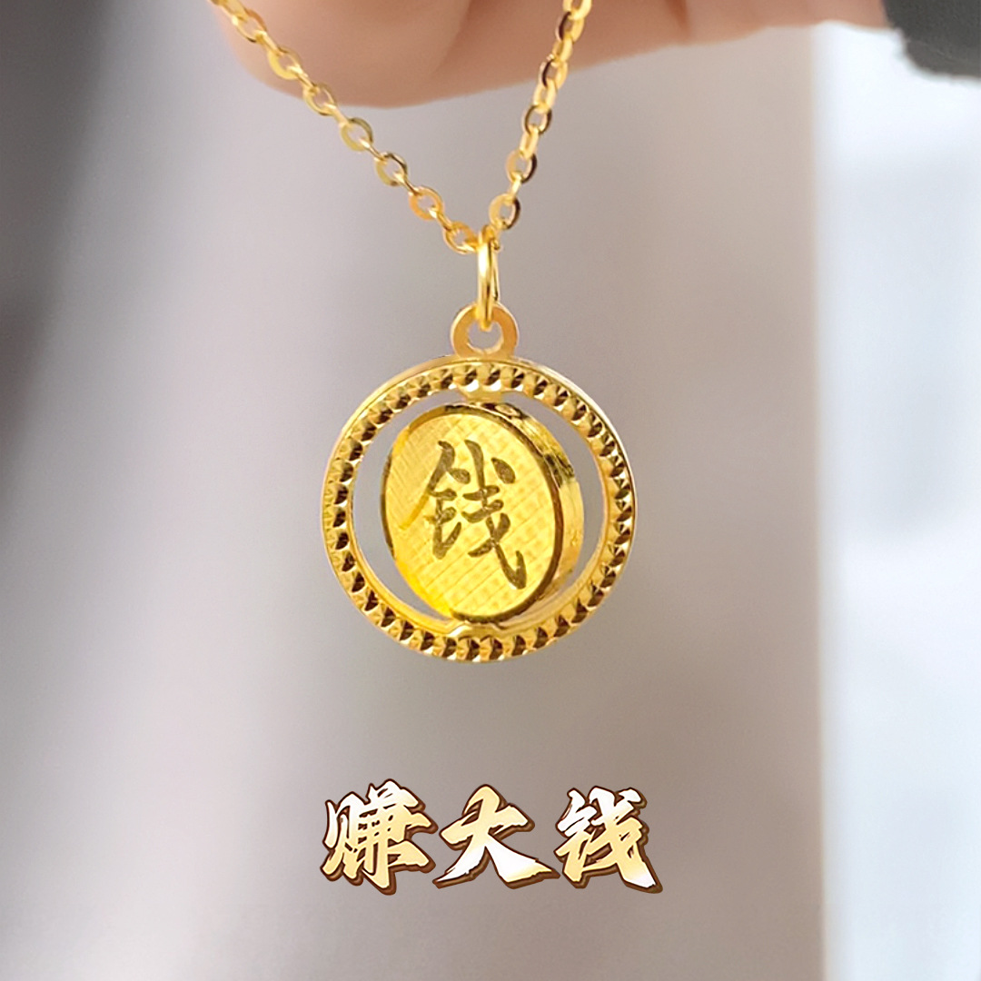 S925 Sterling Silver Necklace Earn Big Money Rotating Disc Pendant Niche Good Luck O-Chain Clavicle Chain Women's Set Chain Gift