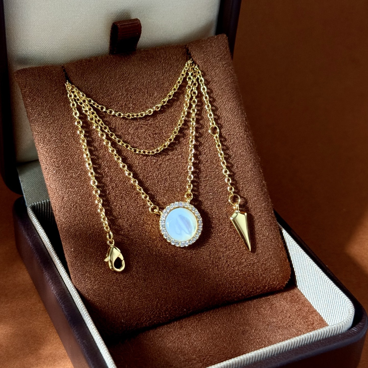 Cross-Border Hot-Selling Disc Pendant Necklace, High-End Exquisite Zircon Multi-Layered Clavicle Chain, Geometric Niche Necklace
