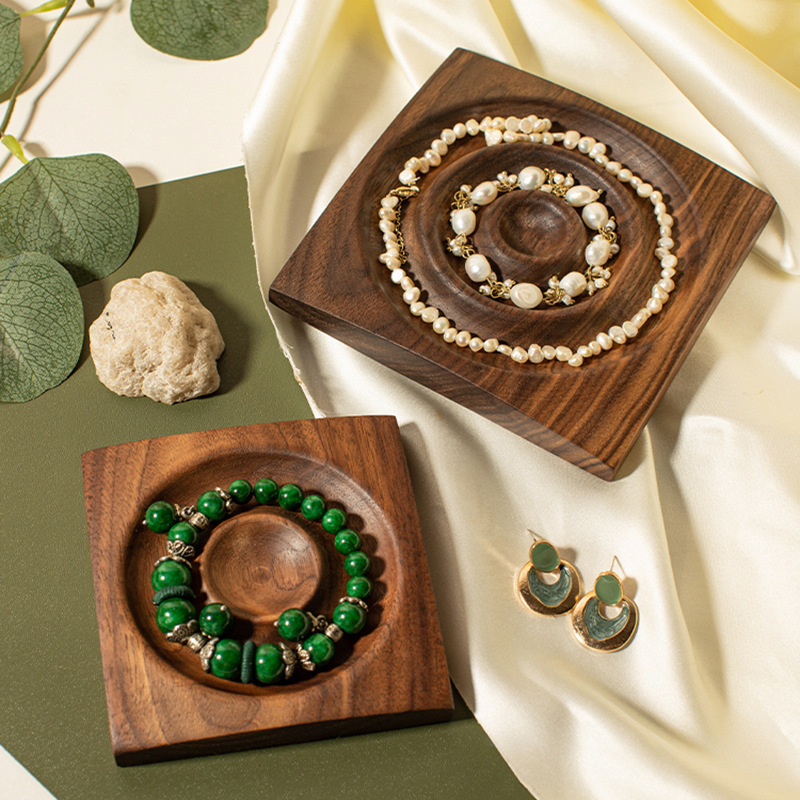 Solid Wood Black Walnut Handmade Handmade Handstring Jewelry Display Props Display Stand Wen Play Display Storage Plate Desktop Shooting