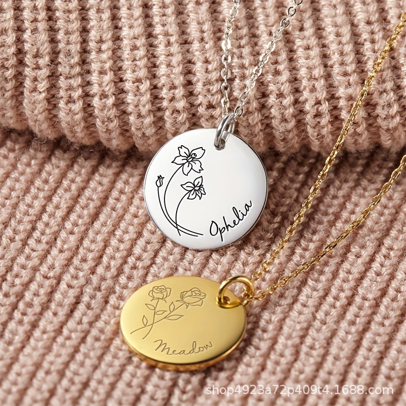 Cross-Border Support for Custom Engraved Stainless Steel Round Pendant Necklace DIY Disc Necklace Jewelry Couple Gift