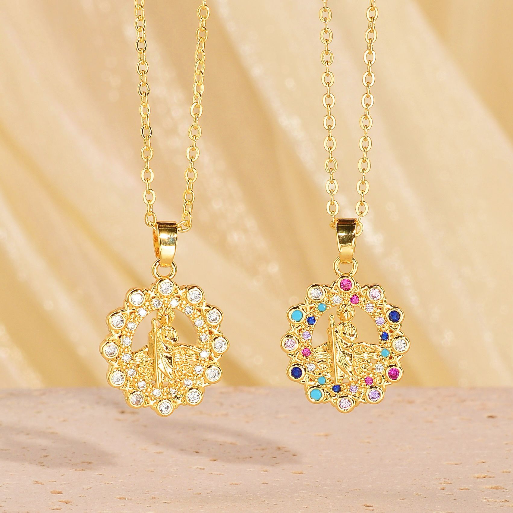 Gilded Saint Shadow Maria Hollow Disc Virgin Mary Pendant Light Luxury Vintage Necklace Sacred Versatile Zircon Jewelry