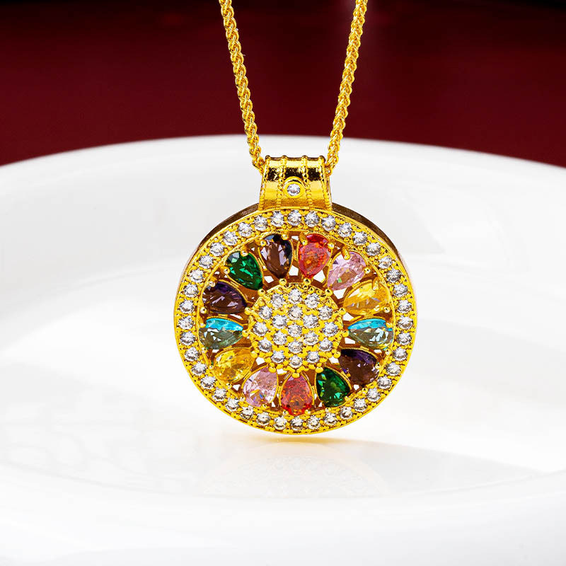 Gold Store Same Style Sand Gold Full Diamond Sunflower Rotatable Disc Pendant Eight Directions Attract Wealth Happiness and Completeness Pendant Necklace