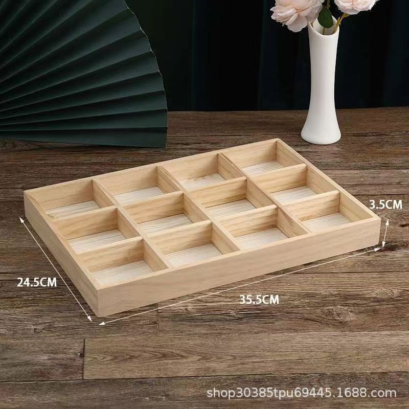 Wooden Jewelry Display Tray Solid Wood Bracelet Storage Tray Counter Pendant Bracelet Ring Storage Divided Tray