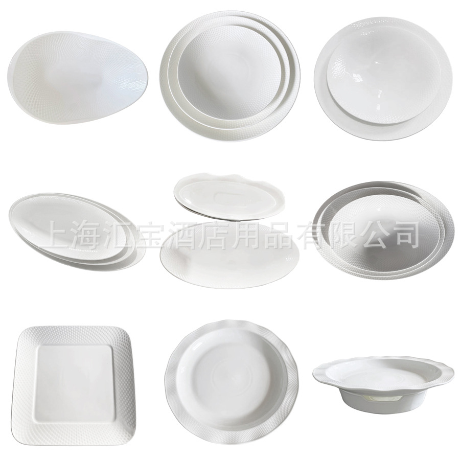 Creative Ceramic Diamond Pattern Series Tableware Western Food Round Plate Square Ceramic Plate Embossed Ceramic Plate Manufacturer
