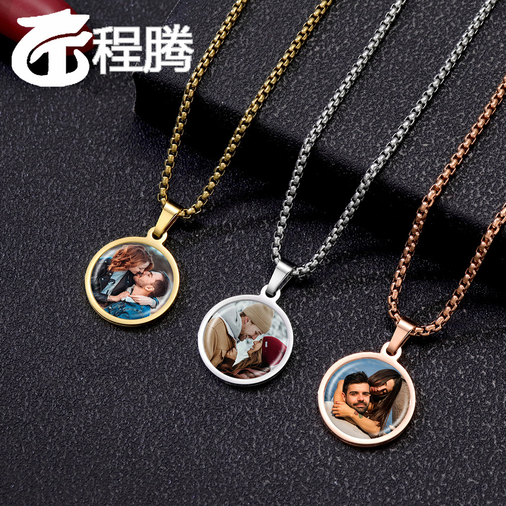 Cross-Border Hot-Selling Stainless Steel Epoxy Disc Photo Necklace High-End Light Luxury European and American Fashion Personality Amazon Style