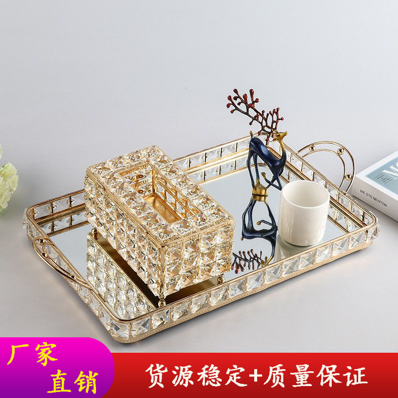 Cross-border Hot-selling European-style Crystal Tray Home Decoration Storage Tray Cosmetics Jewelry Display Tray