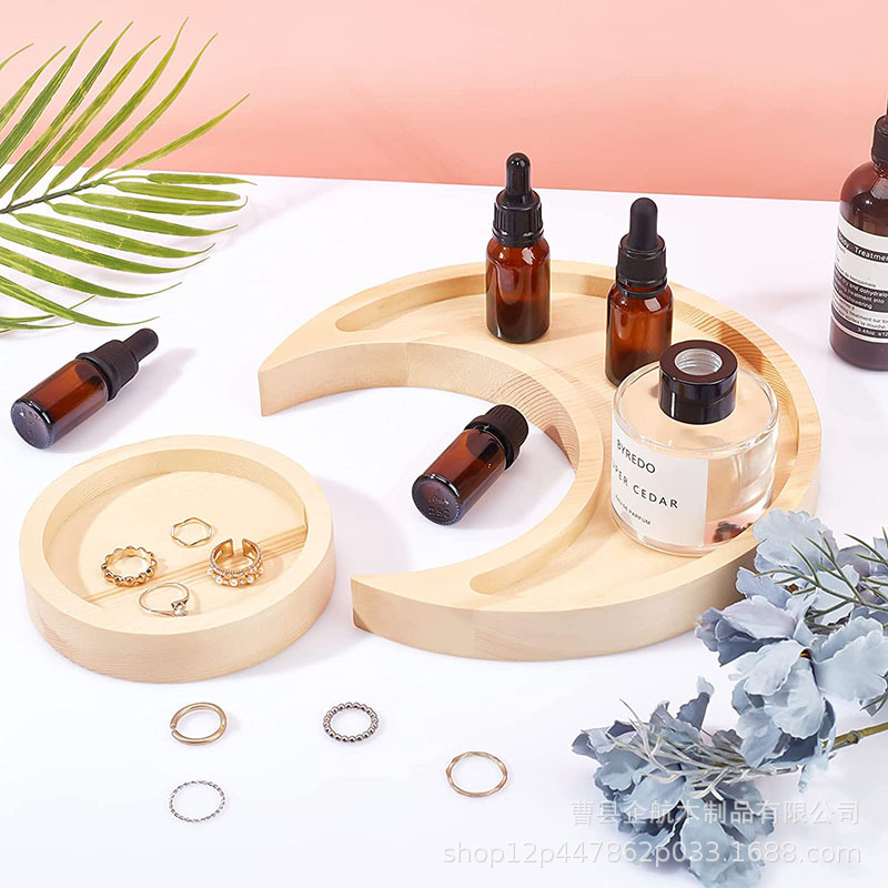 Wooden desktop moon-shaped storage tray crystal stone bracket display tray jewelry jewelry display tray wooden tray