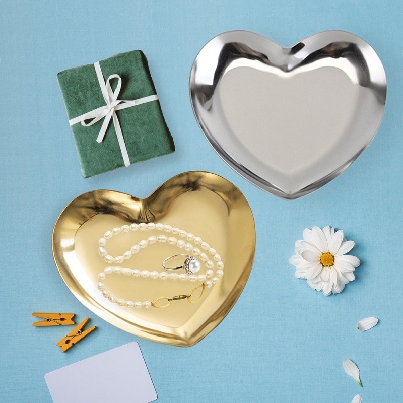 LOGO printing creative ins Golden Heart-shaped silver ceramic plate jewelry ring necklace storage desktop tray