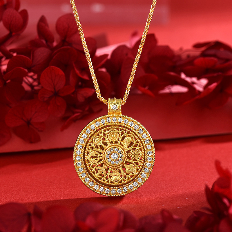 2024 New Explosions New Chinese Necklace Blossom Rich Heritage Hollow Disc Necklace Light Luxury Niche Men and Women