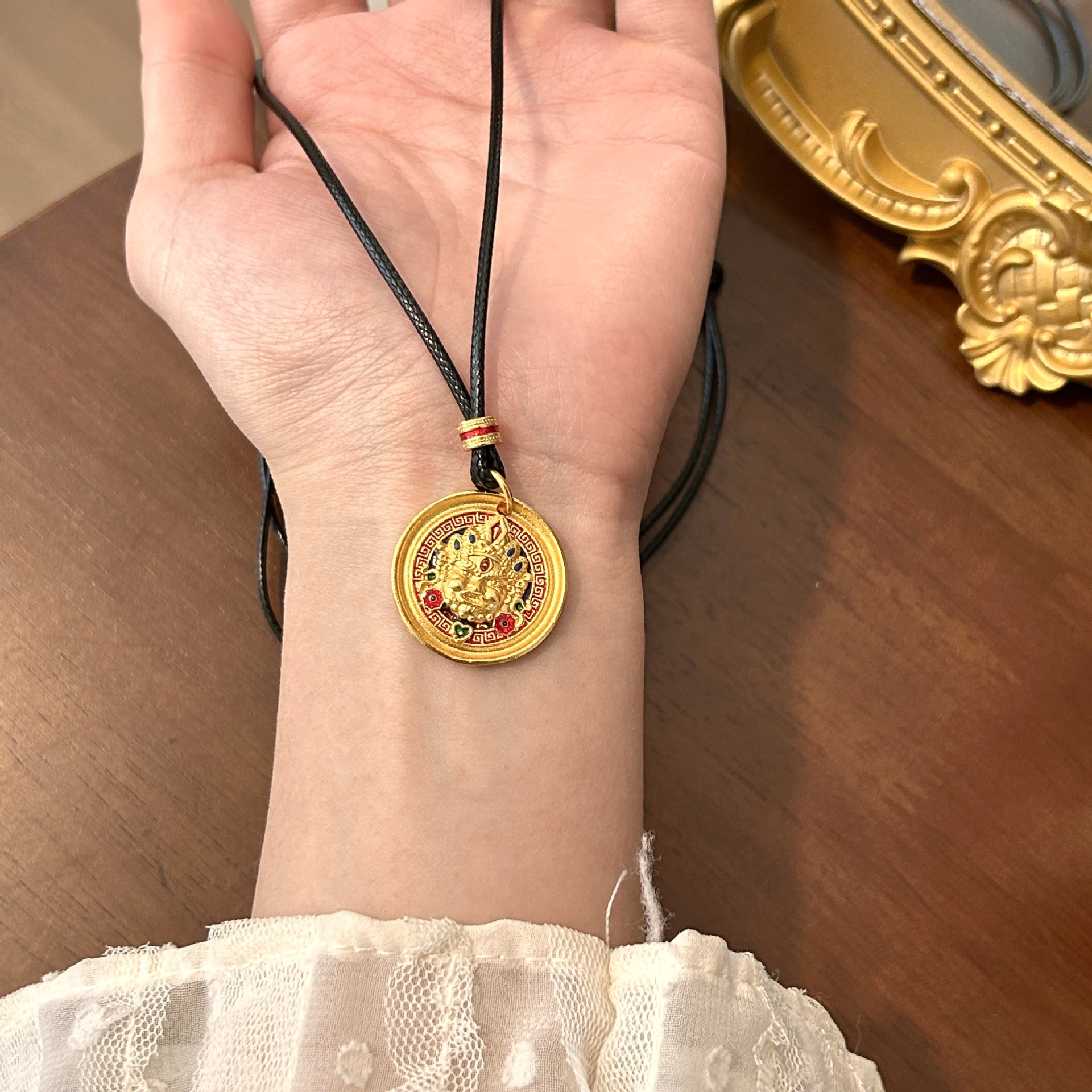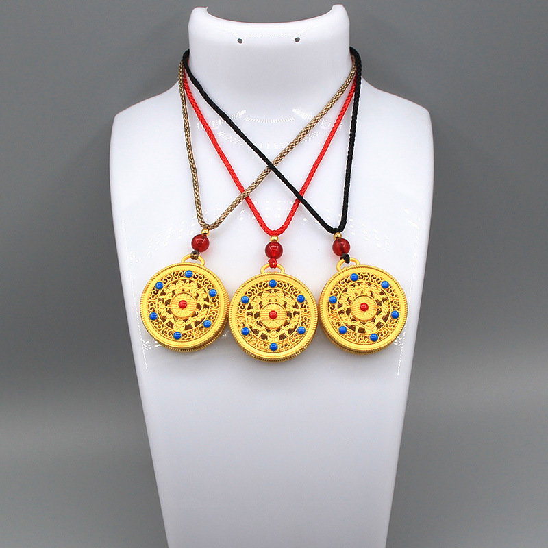 Yellow God of Wealth Pendant Brass Gold-plated Girls' Necklace New Version Yellow God of Wealth Disc Pendant Ancient Xizang Pendant Jewelry