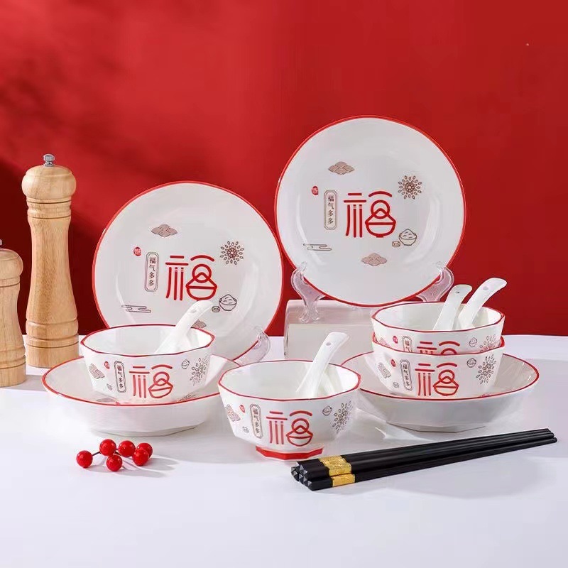 High-value underglaze color small fresh Fuqi Duoduo ceramic bowl plate rice bowl plate creative ceramic tableware diamond