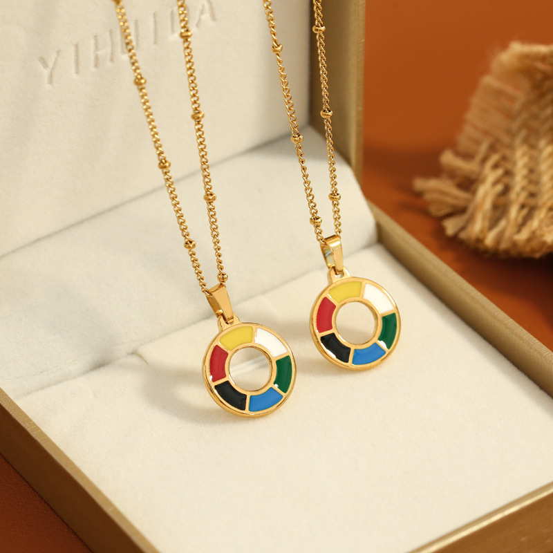 Europe and the United States drop oil six color ring color disc necklace ins style personality all-match clavicle chain titanium steel plated 18K gold