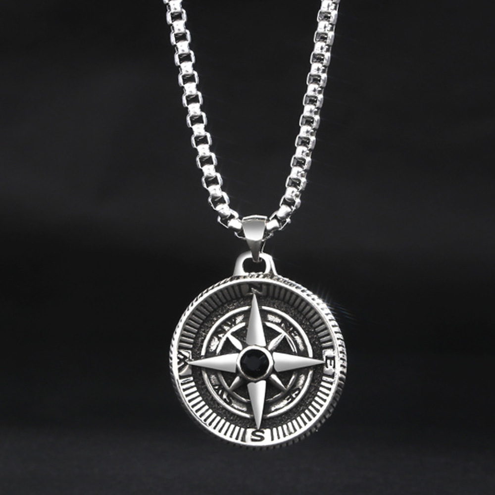 New Retro Compass Compass Necklace, Personalized Punk Style Men's Trendy Versatile Fashion Versatile Disc Pendant