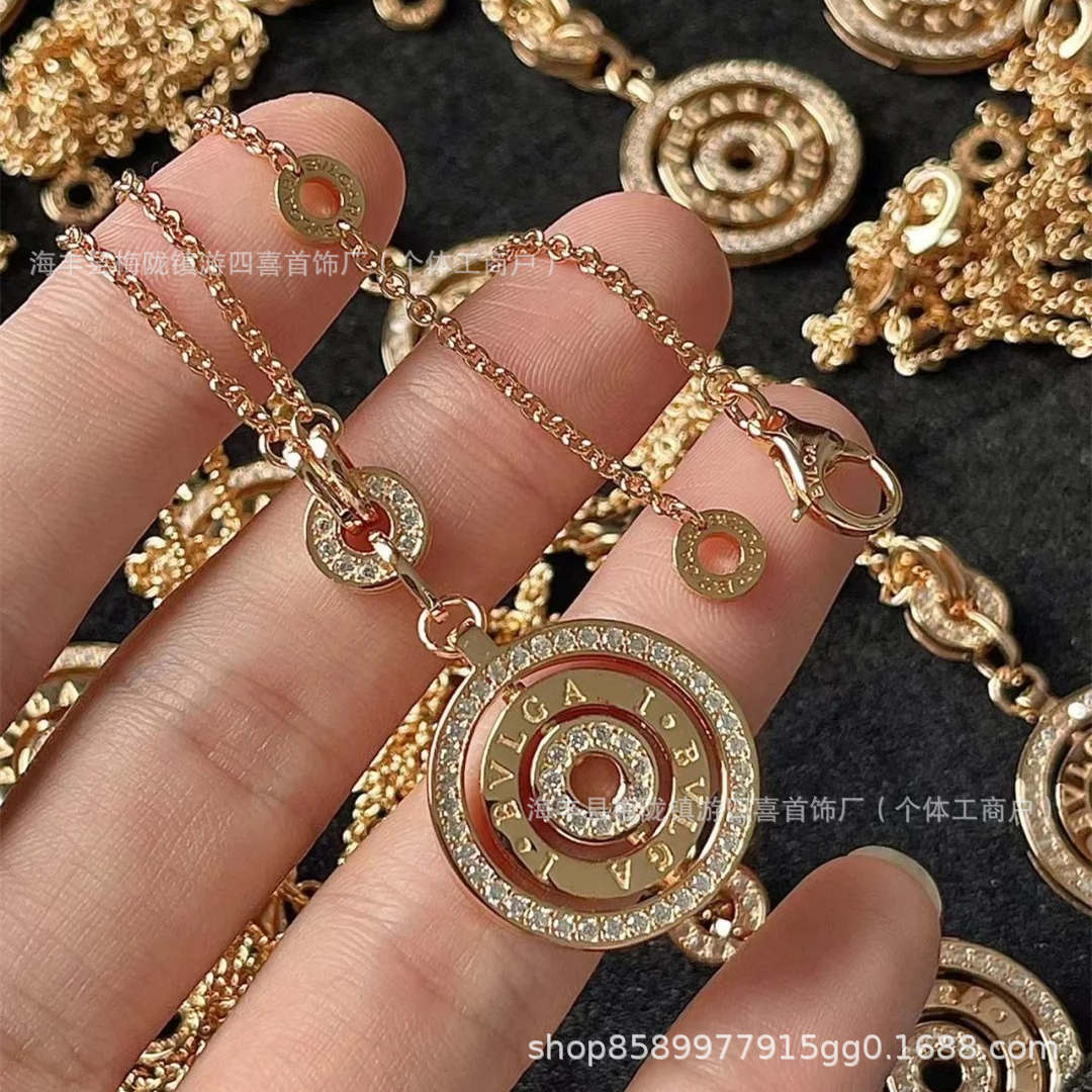 Gold Shop Same Style Rose Window Pendant Necklace with Sand Gold and Diamonds, Rotatable Hollow Filigree Disc Clavicle Sweater Chain