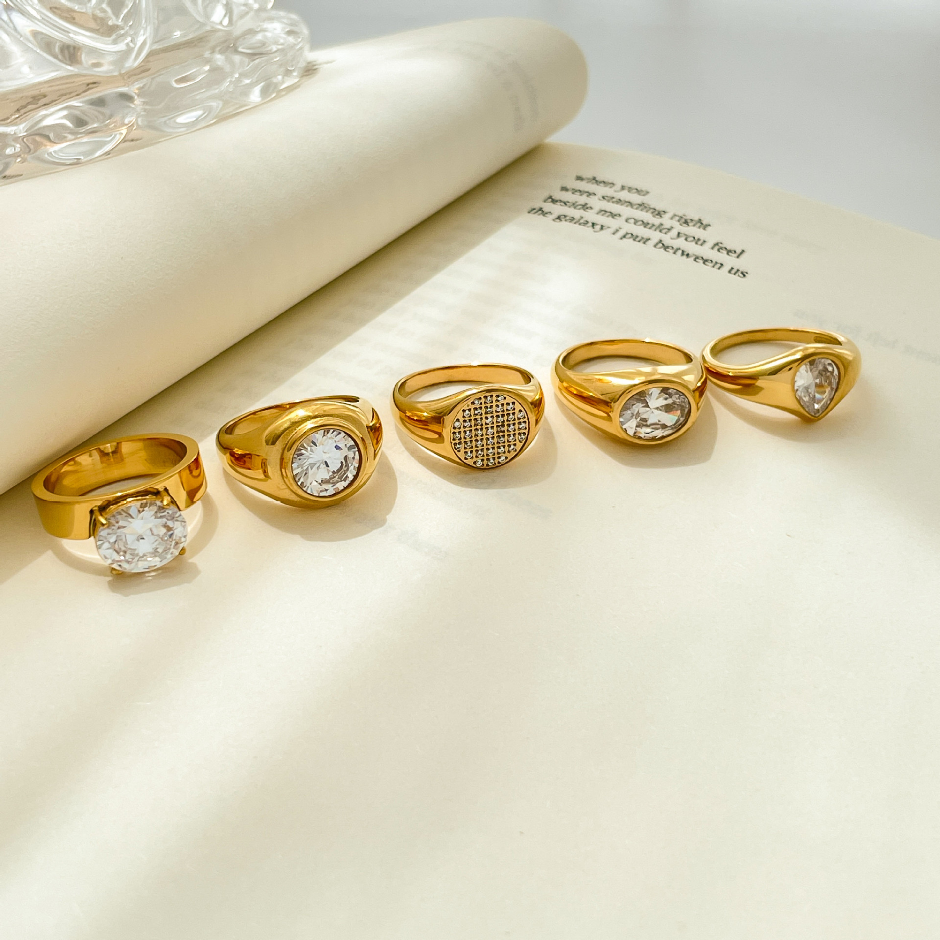 Large disc fine drill oval round zircon four claw peach heart water drop zircon titanium steel plated 18 gold ring