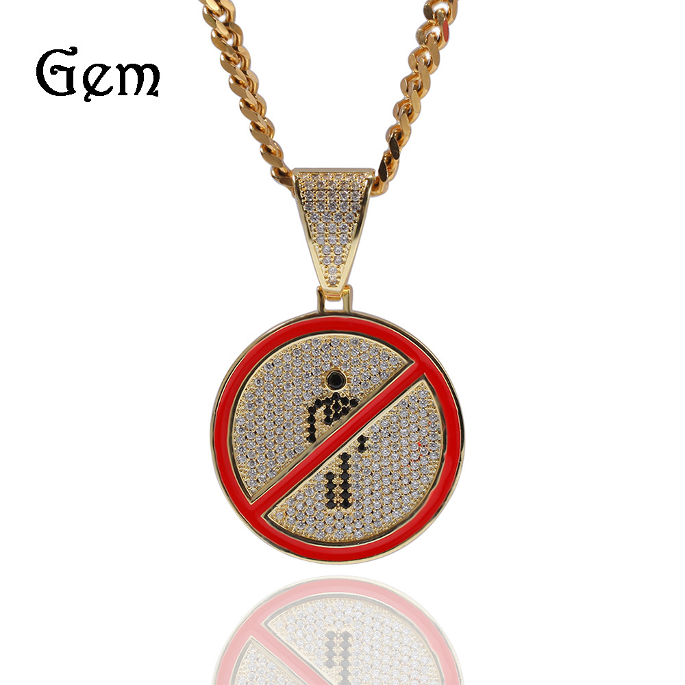 European and American Popular Hip-Hop Personalized Copper Inlaid Zircon Alternative Symbol Disc Pendant Trendy Men's Hiphop Necklace Wholesale