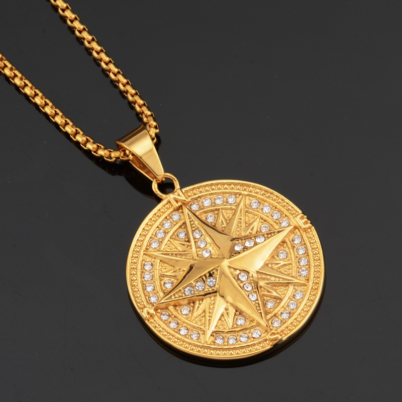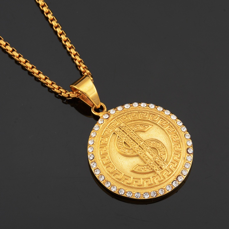 201811 Europe, America, Japan and South Korea Fashion Large US Gold Disc Boutique Necklace Hanging Ornaments Men and Women Titanium Steel Long STN1844