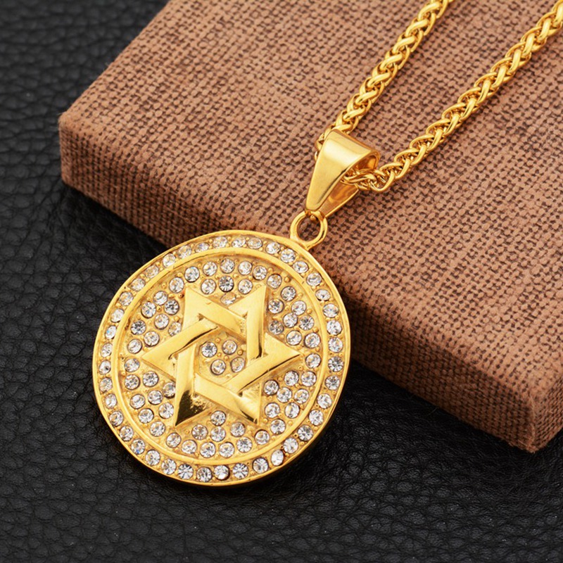 201811 Europe, America, Japan and South Korea fashion six-pointed star disc boutique necklace pendant men's and women's titanium steel long STN1359