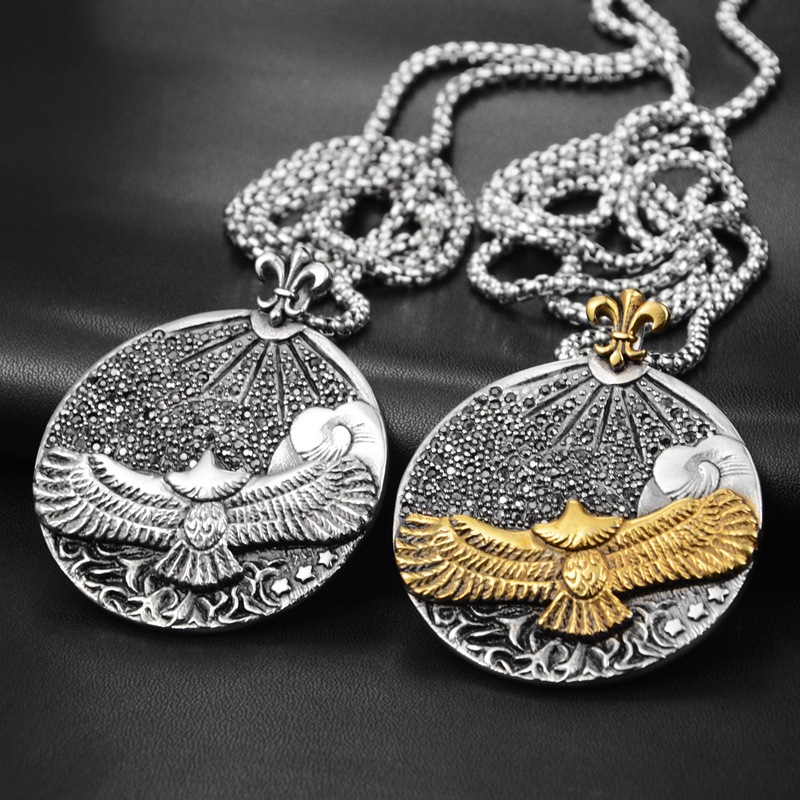 European and American Japanese and Korean nightclub hip hop street fashion fashion Flying Eagle Disc Titanium steel necklace pendant for men and women 20309A