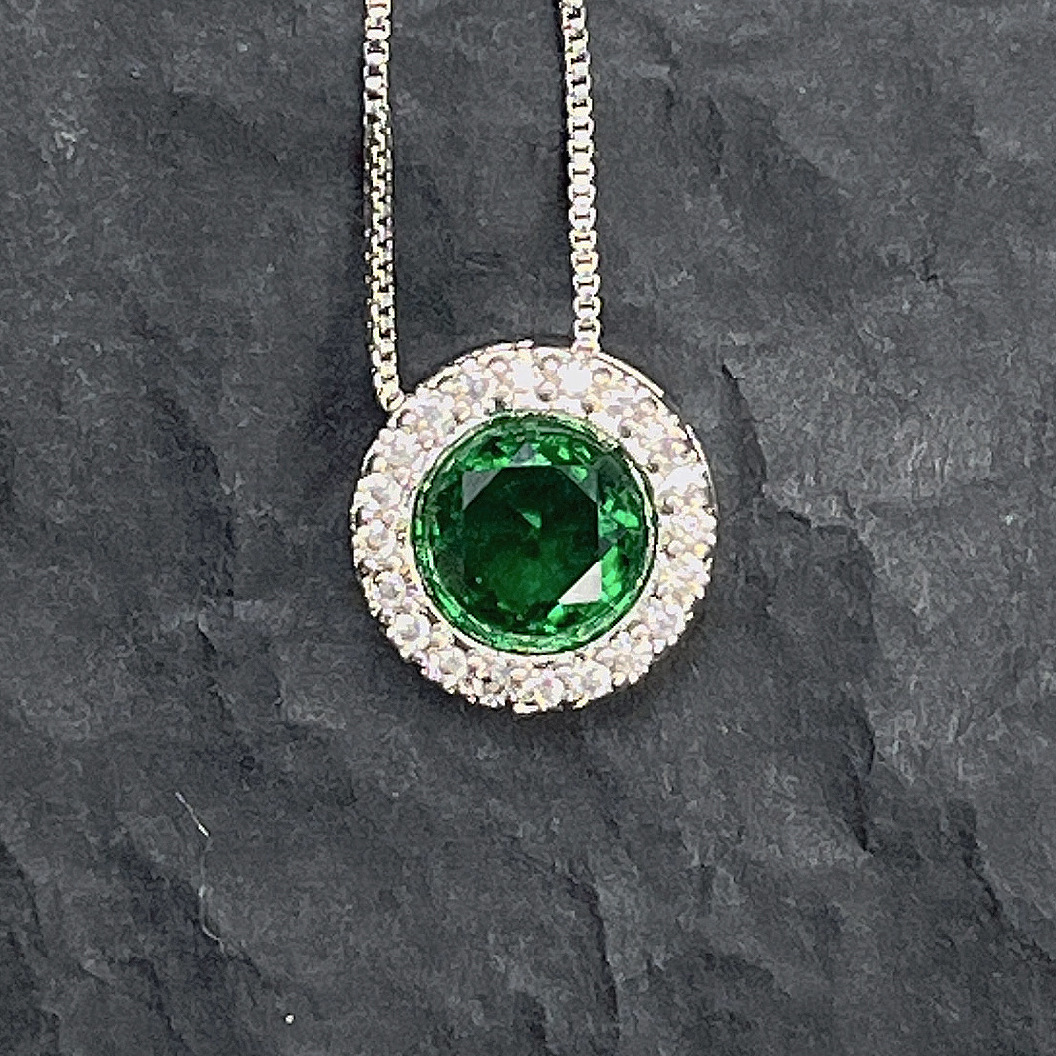 Ins Style Xiaohongshu Best-Selling Disc Inlaid Forest Green Zircon Necklace Pendant Jewelry for Women Adjustable Fashion