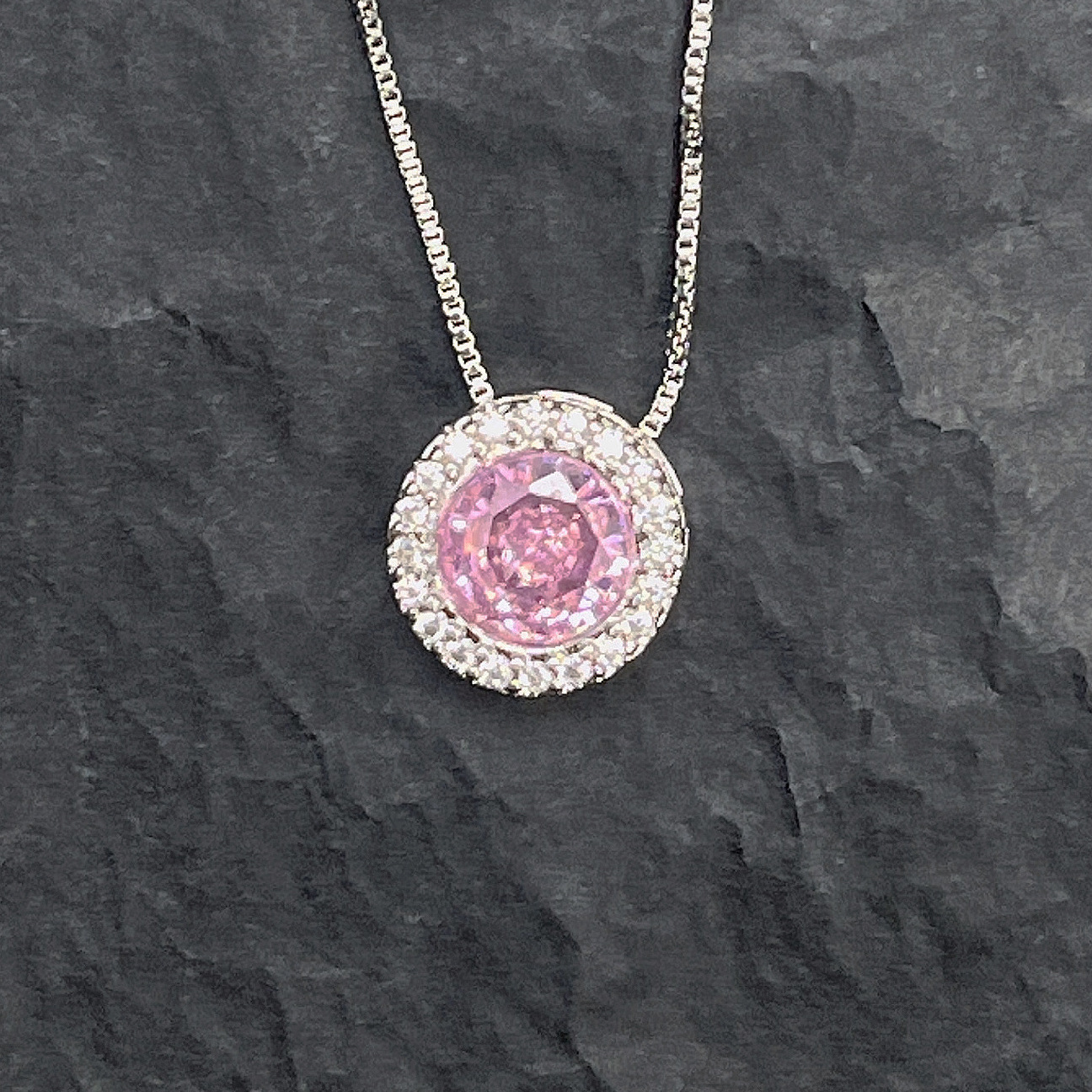 Ins Style Xiaohongshu Best-Selling Disc Inlaid Light Pink Zircon Necklace Pendant Jewelry for Women Adjustable Fashion
