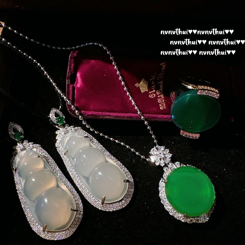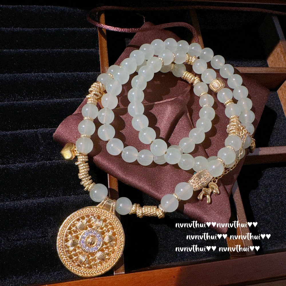 White Moonlight lychee frozen rich beans necklace water spirit water spirit plated 18K gold green chalcedony disc zircon necklace