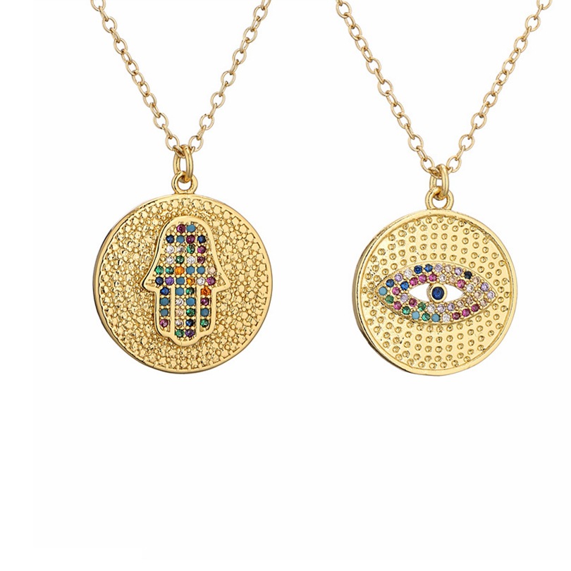 European and American Foreign trade copper gold plated geometric disc Devil's Eye pendant necklace micro inlaid zircon Palm women's jewelry