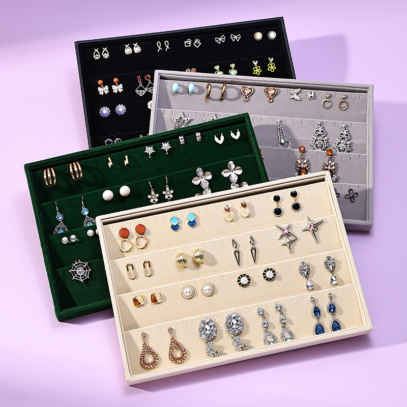 Velvet Earring Display Stand Large Capacity Jewelry Tray Earring Display Tray Jewelry Necklace Ring Display Storage Tray