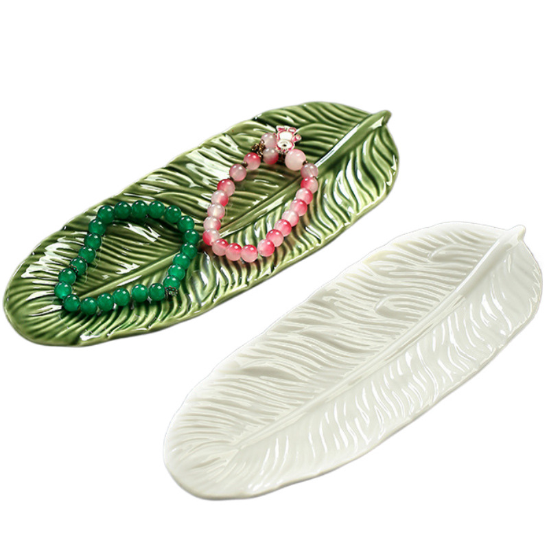Leaf Fruit Tray Nordic Ceramic Jewelry Tray Wind Dinner Plate Nordic Creative Large Plate Necklace Display Stand Jewelry