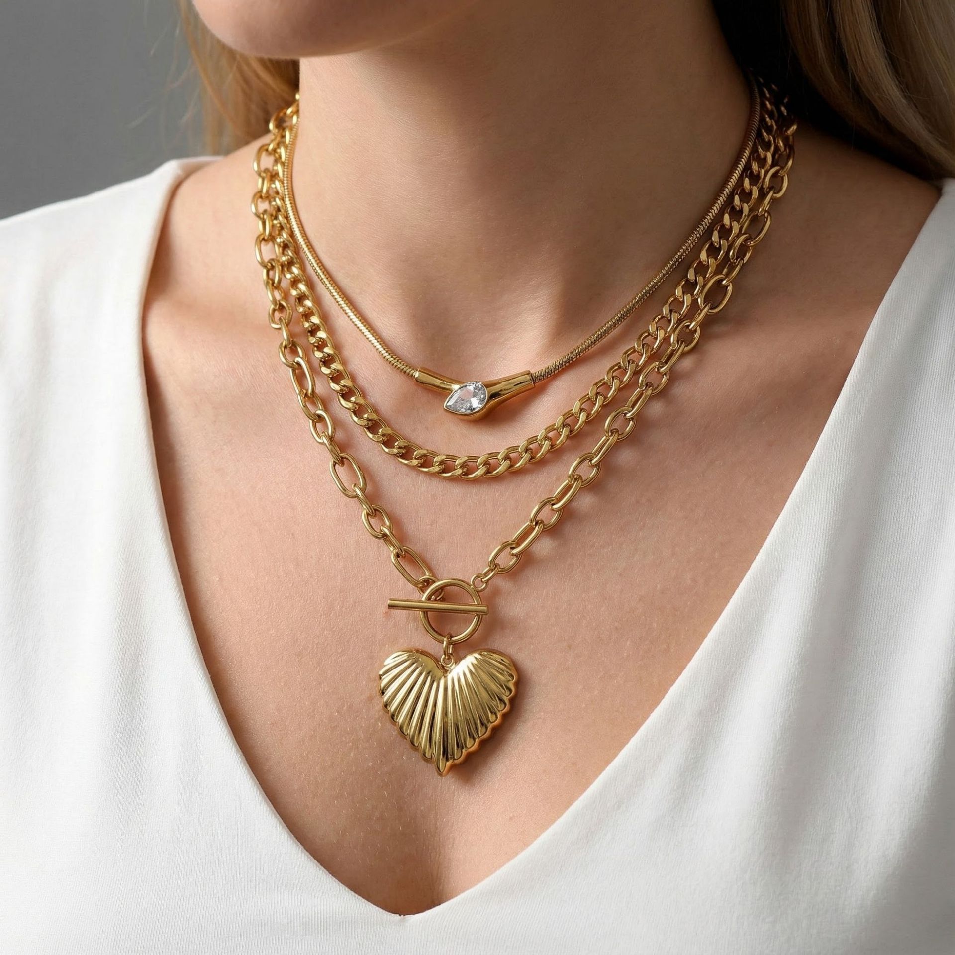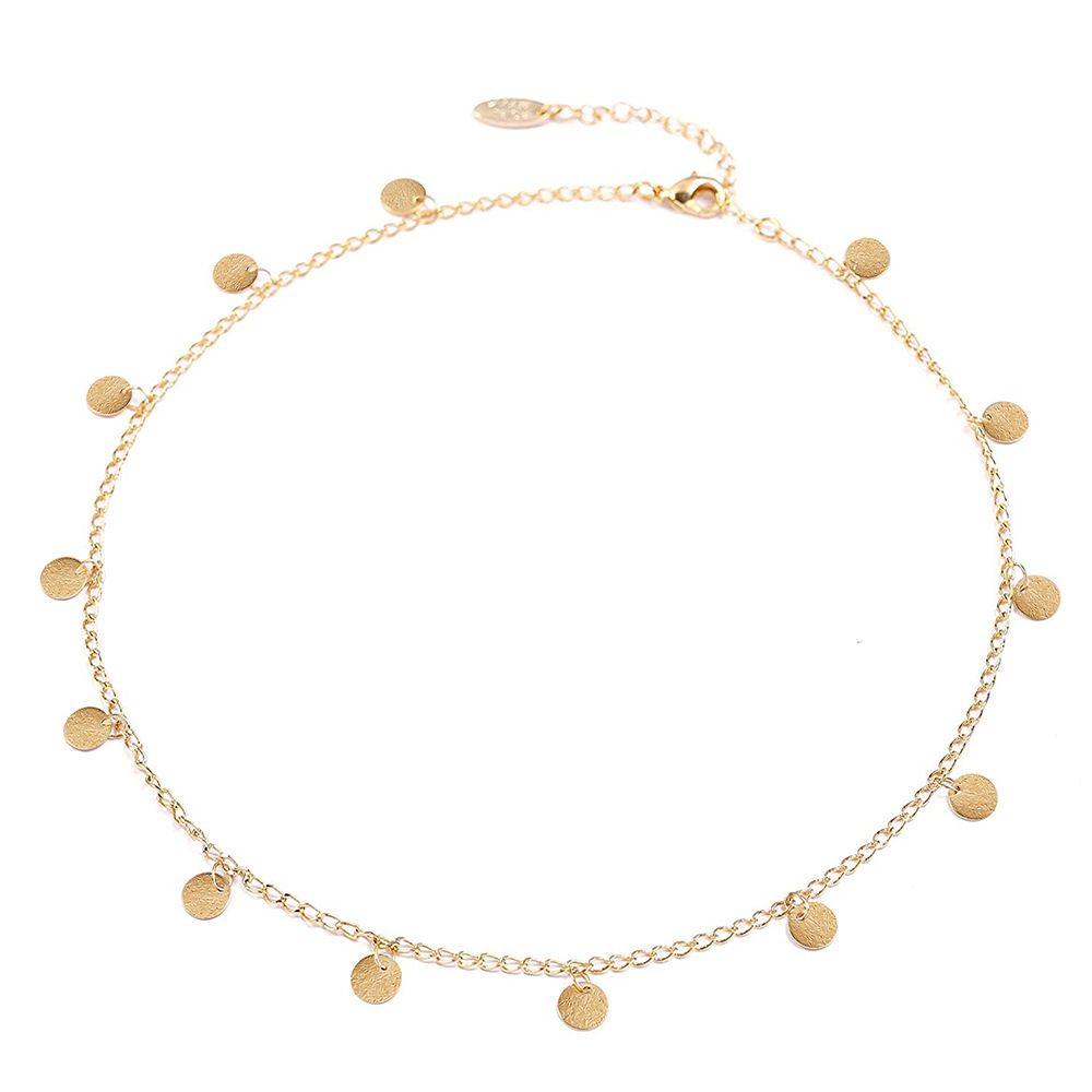 18K gold-plated double-layer pendant necklace stainless steel bead chain disc pendant neck chain women's versatile fashion necklace