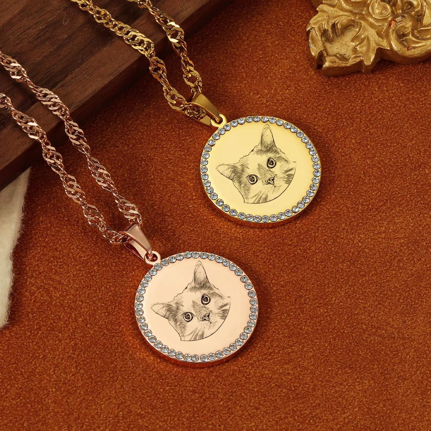 Personalized Engraving Pattern Inlaid Disc Necklace Pet DIY Pattern Pendant Disc Dog-Shaped Necklace